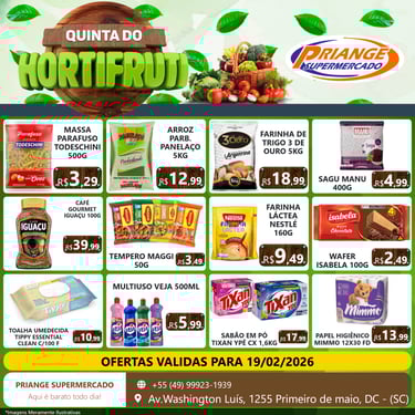 O atendimento é excelente, sempre saio satisfeito com minhas compras. Recomendo o Priange Supermercado!